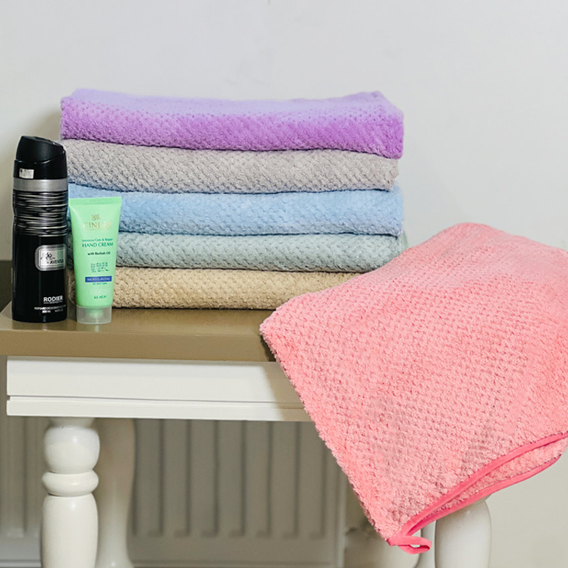 از جنس الیاف مخملی نرم و ژله ای است و رنگ آن ثابت است. همچنین بسیار سبک و قابل حمل برای مسافرت ، استخر ، باشگاه و هتل می باشد و قدرتمند در جذب آب و رطوبت پوست است.