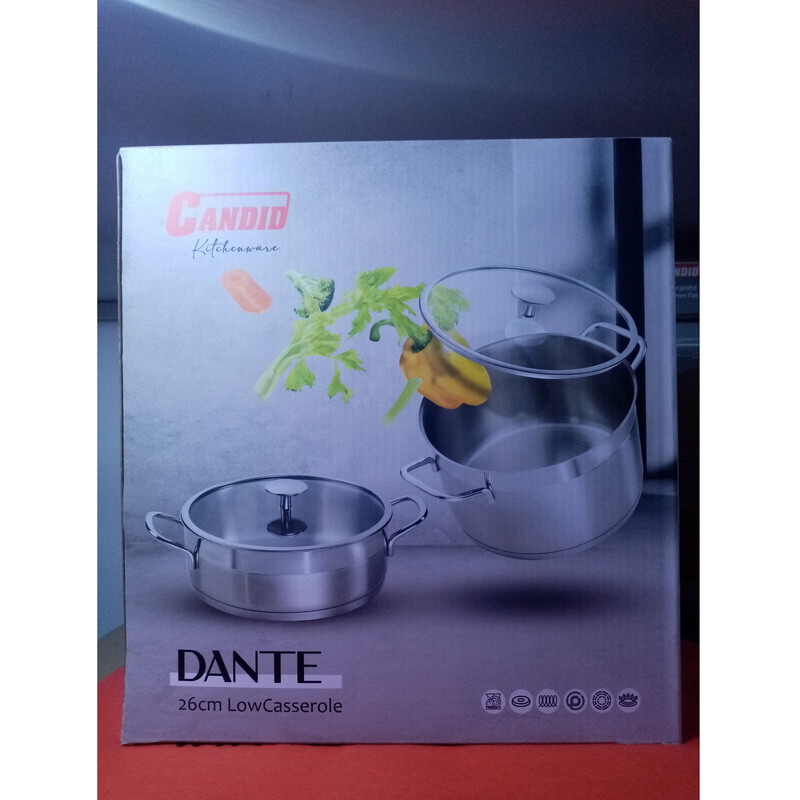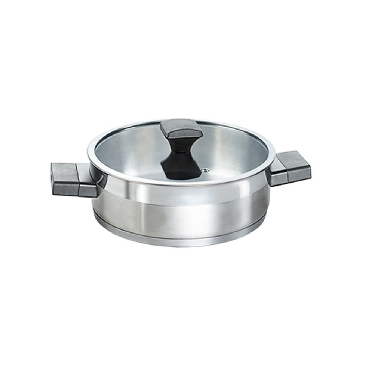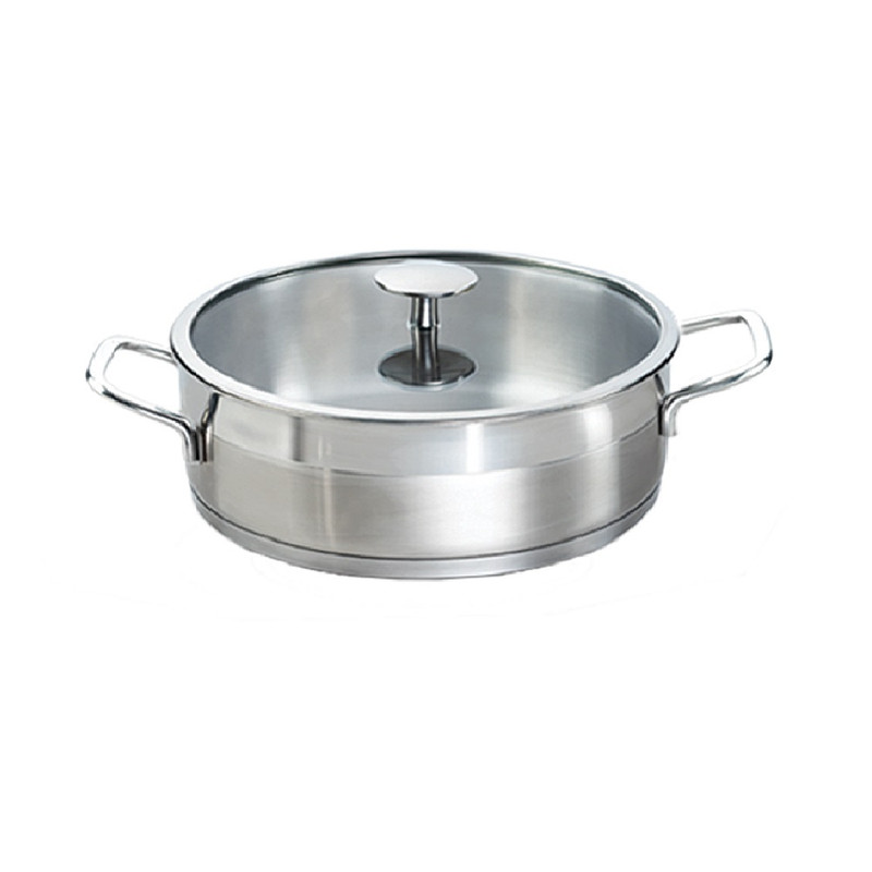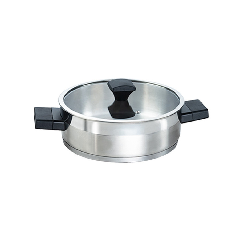 جنس بدنه: استیل ۱۸/۱۰ – کفی اینداکشن ۳لایه با ضخامت بالا جهت توزیع یکنواخت حرارت – درب پیرکس – دستگیره های ایمن و خنک _ دستگیره های بدون پرچ (بدون چربی و آلودگی در شکاف پرچ ها) _ مقاوم در برابر حرارت بالا – قابلیت شستشو در ماشین ظرفشویی