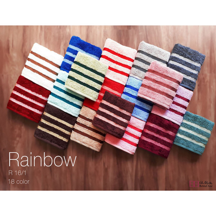 جذب آب بسیار بالا بسیار لطیف و زیبا مدل رنگین کمان حوله دستی متوسط سایز 78x40 نخ پنبه رینگ 16/1 نوع بافت غیر مخمل دو رونخ