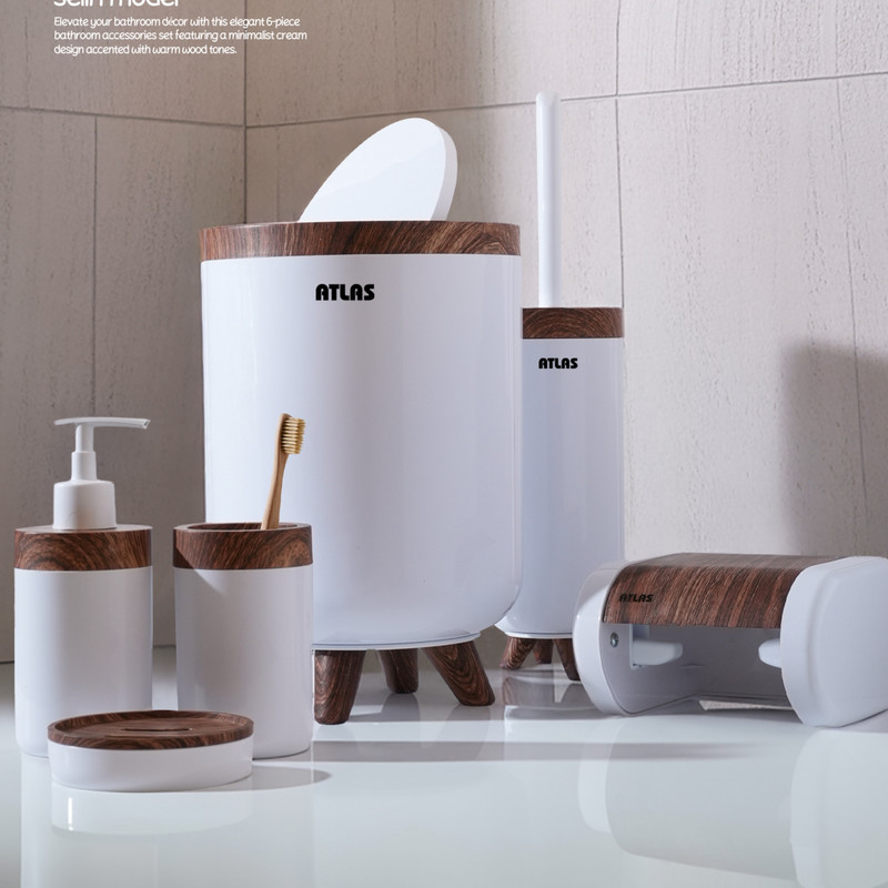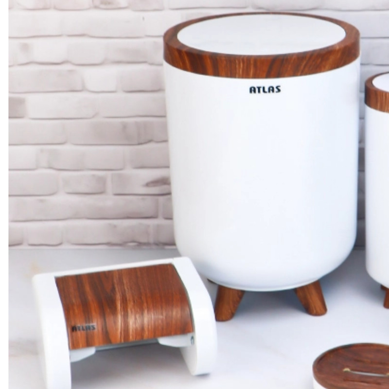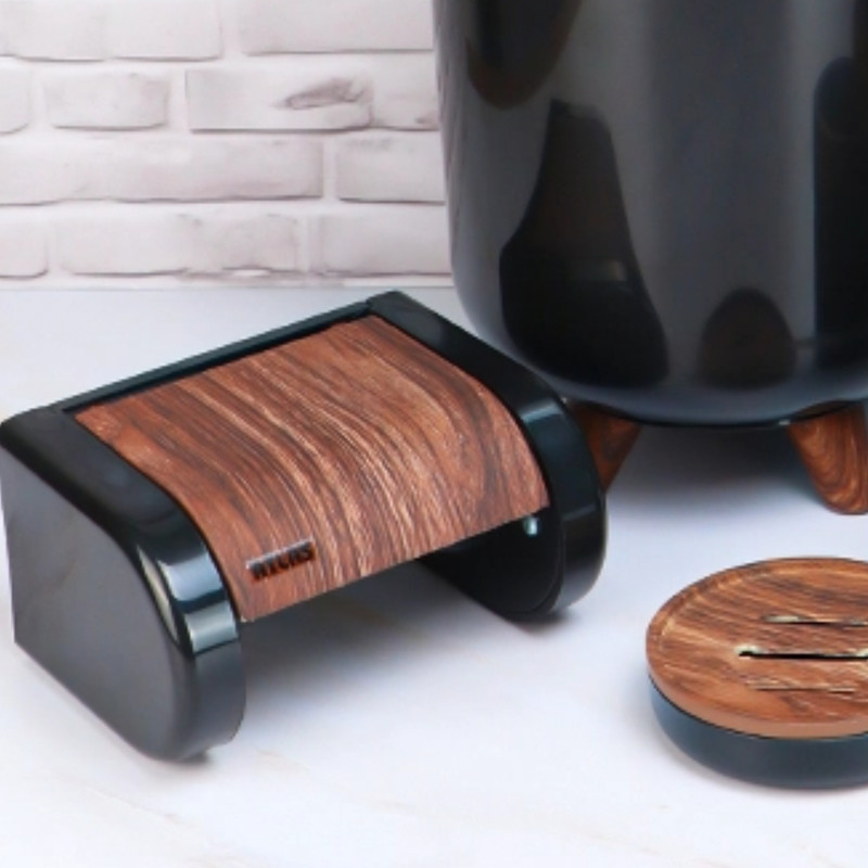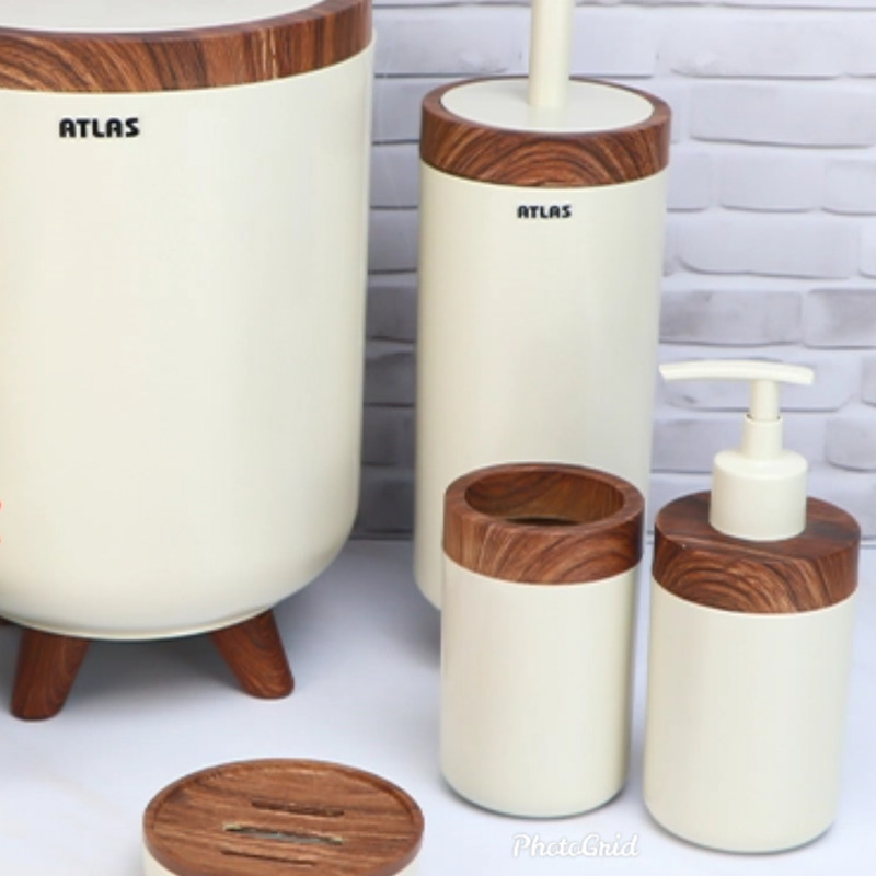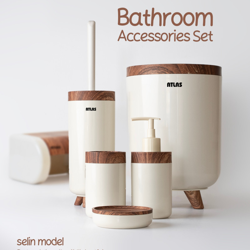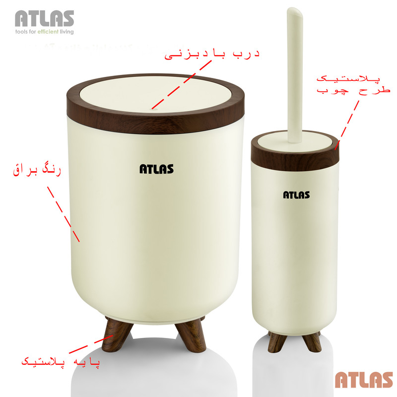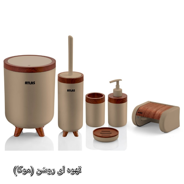 سطل و برس به همراه جا دستمال و جای صابون و مسواک و جای مایع میباشد ، این محصول در رنگ های مشکی ، طوسی ، سفید و وانیلی عرضه شده است