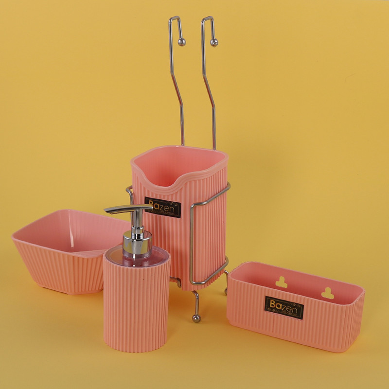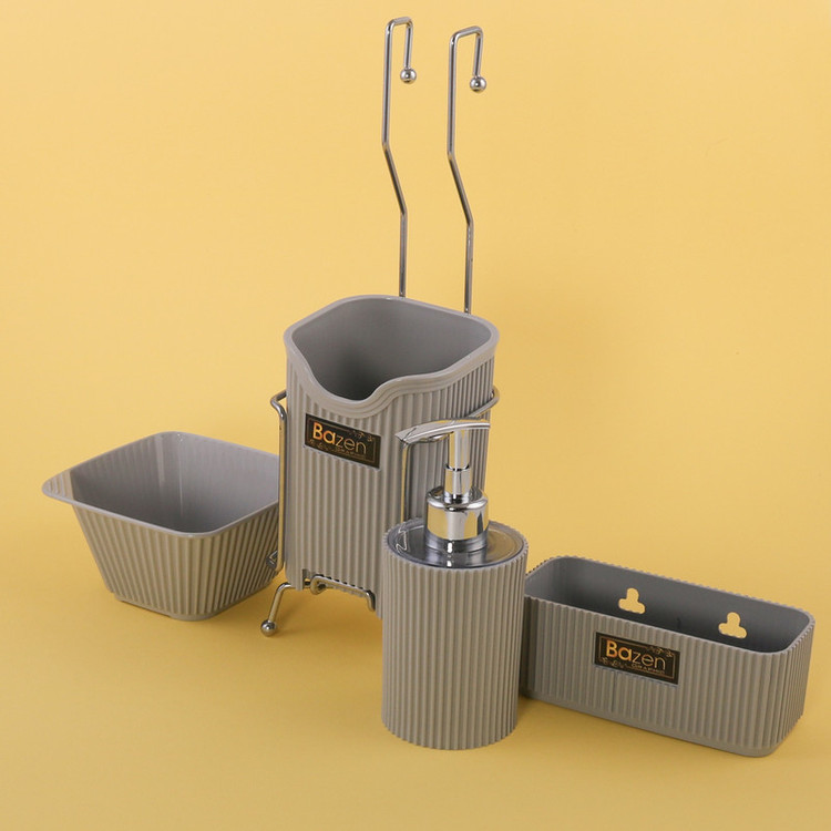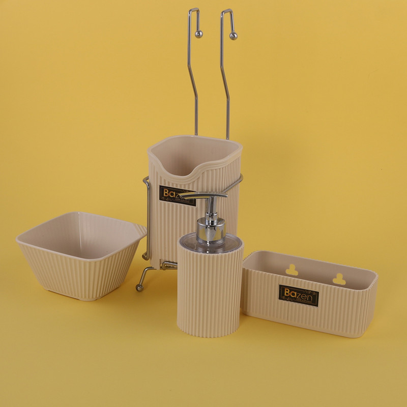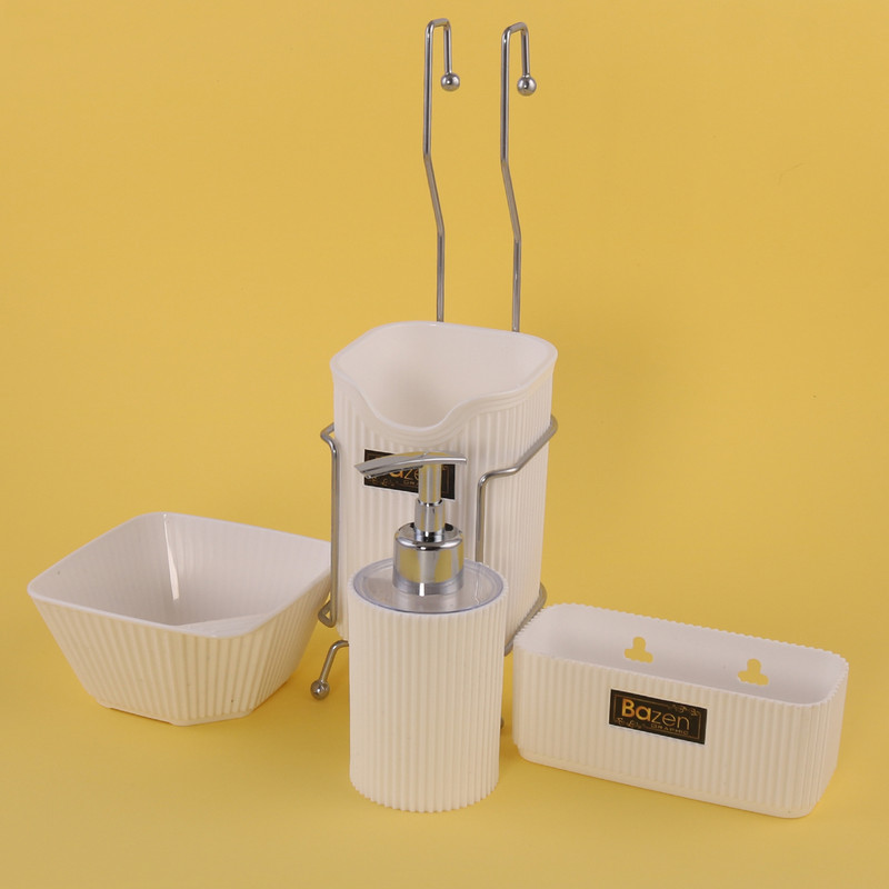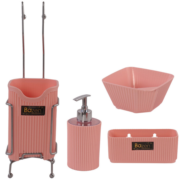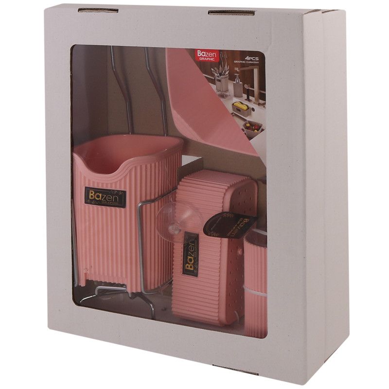 ست ظرفشویی شامل: جا قاشقی: 10×10×34 سانتیمتر جا مایع: 7×7×17 سانتیمتر جا اسکاچ: 6×6.5×16 سانتیمتر تفاله گیر(صافی): 7×13.5×13.5 سانتیمتر