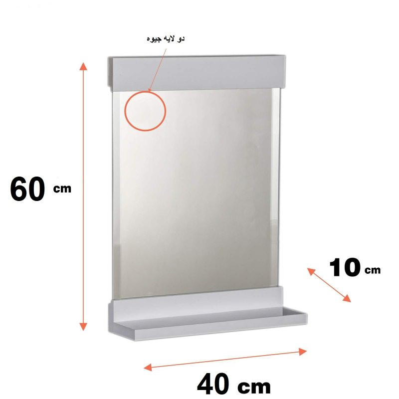 آیینه طبقه دار تمام PVC برند آزالیا دارای طبقه برای وسایل دکوری و جامسواکی میباشد. آیینه استفاده شده دو لایه جیوه و ورق مصرفی ضدآب تمام PVC هست. از رنگ ضد رطوبت پلی اورتان استفاده شده است. بر روی آیینه ها بست نصب دیوار قرار گرفته و به راحتی قابل نصب بر روی دیوار مورد نظر هست. سایز آیینه عرض 40 cm در ارتفاع 60 cm میباشد. جهت ست کردن میتوانید از باکس های ارتفاع 60 آزالیا کنار آیینه ها استفاده کنید.