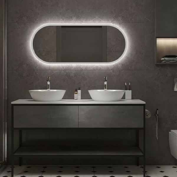 دور آینه آینه کاملا صاف و صیقلی پشت آینه کاملا با MDF کاور شده LED کم مصرف با طول عمر بالا نصب آسان با فیتینگ دیواری آینه سوپرکلییر 4 میل