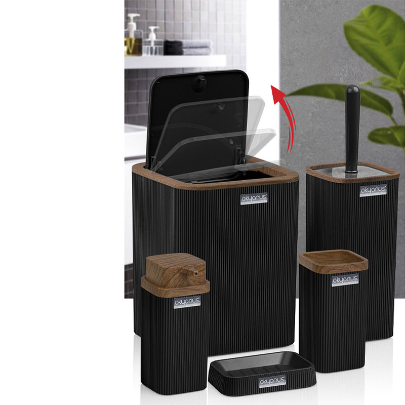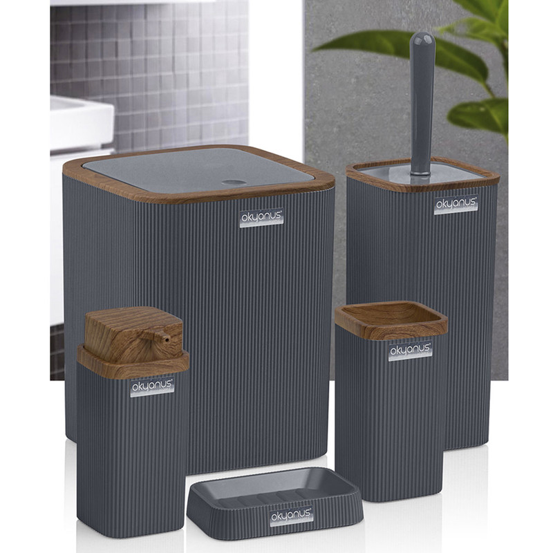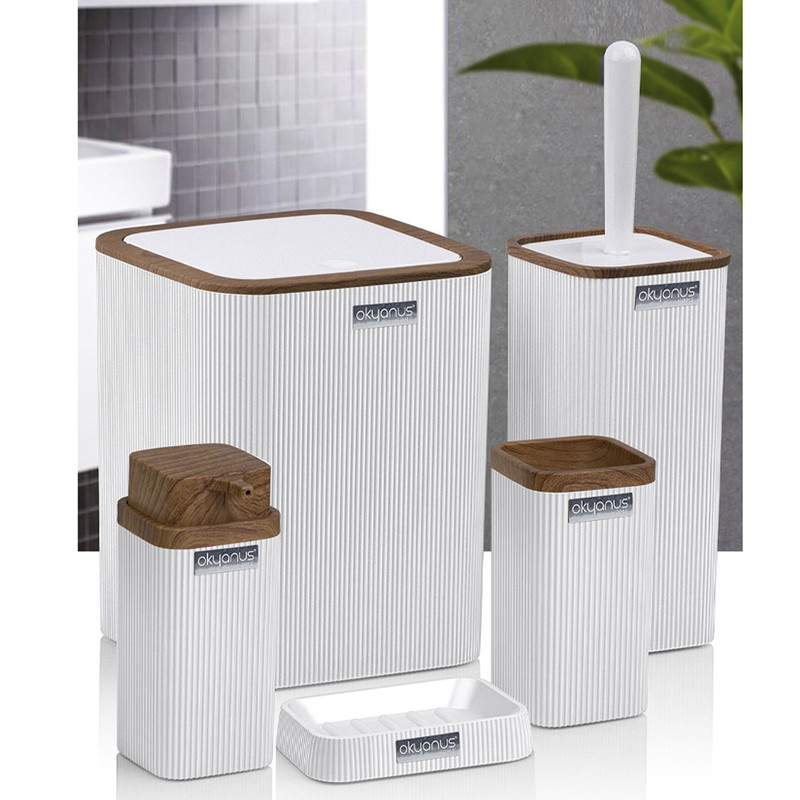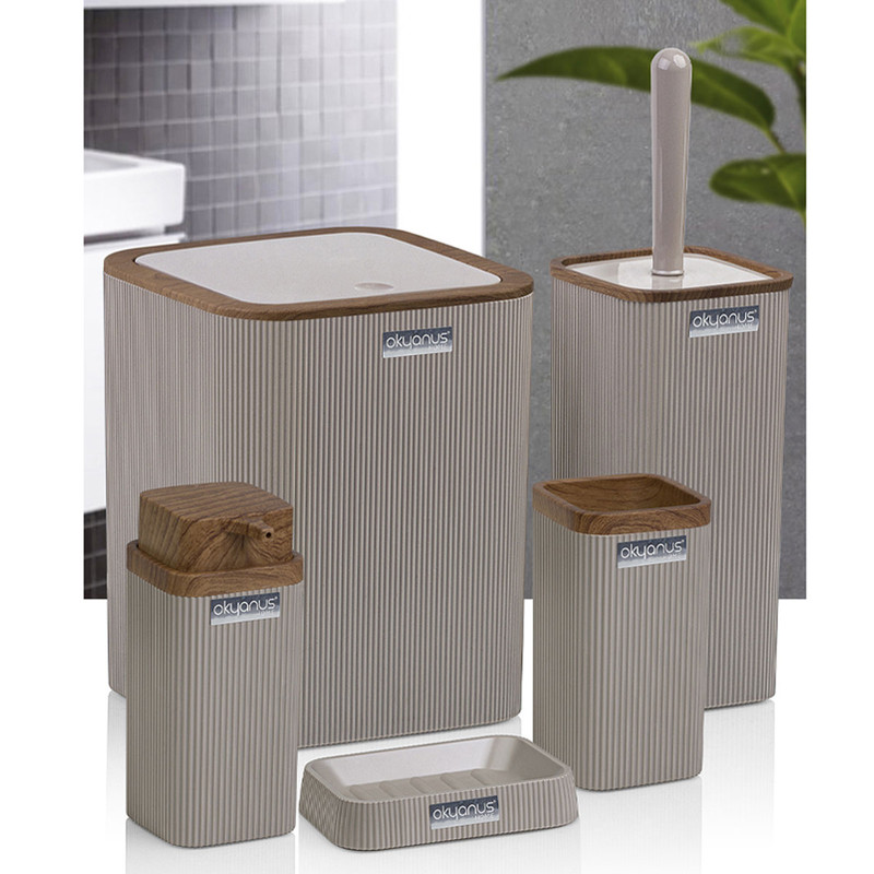 جدیدترین ست سرویس بهداشتی 5 پارچه ساخت فری هوم ترکیه پیشرو در صنعت بهداشت و لوازم خانگی، این ست 5 پارچه تمام نیازهای موجود در حمام و سرویس های بهداشتی را برطرف می نماید، محصولی بسیار کاربردی به همراه کیفیت و زیبایی. این مجموعه زیبا از آکریلیک تولید شده است که ماندگاری بسیار بالایی دارد. دارای استانداردهای ایمنی و سلامت بهداشت انسان از اروپا را دارد و محصولی صادراتی به اروپا می باشد. شامل سطل درب دار، فرچه و ظرف مخصوص آن، جا مسواکی، جامایع پمپی و جاصابونی می باشد.تمامی اقلام قابلیت شستوشو دارند و میتوانید با خیالی آسوده، آنها را بشویید. با این ست بهداشتی، زیبایی محیط و سرویس ها چندین برابر میشود.