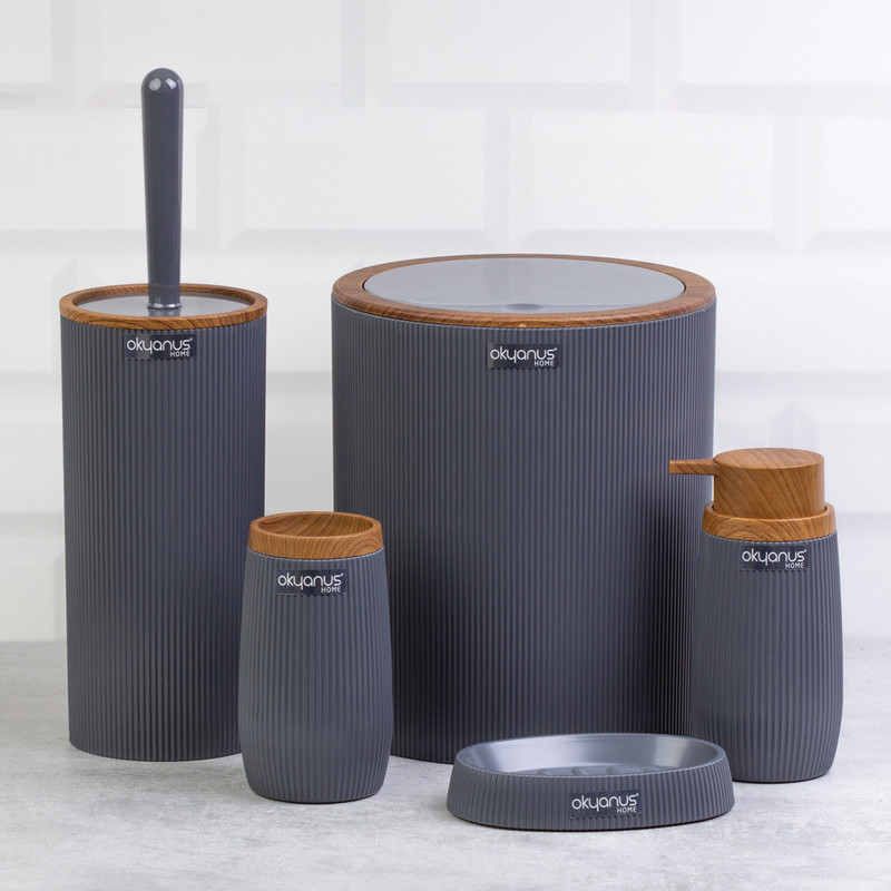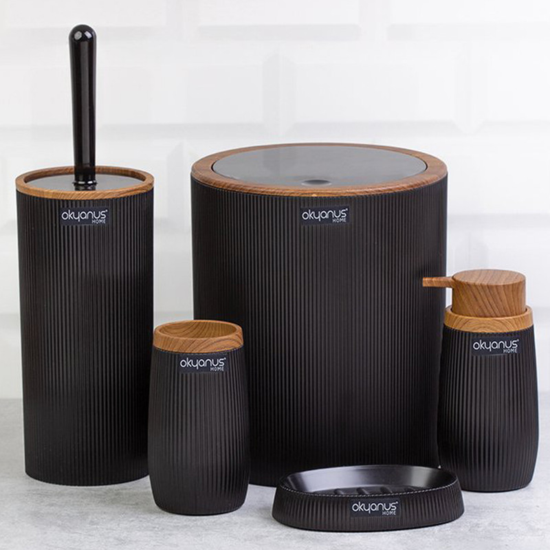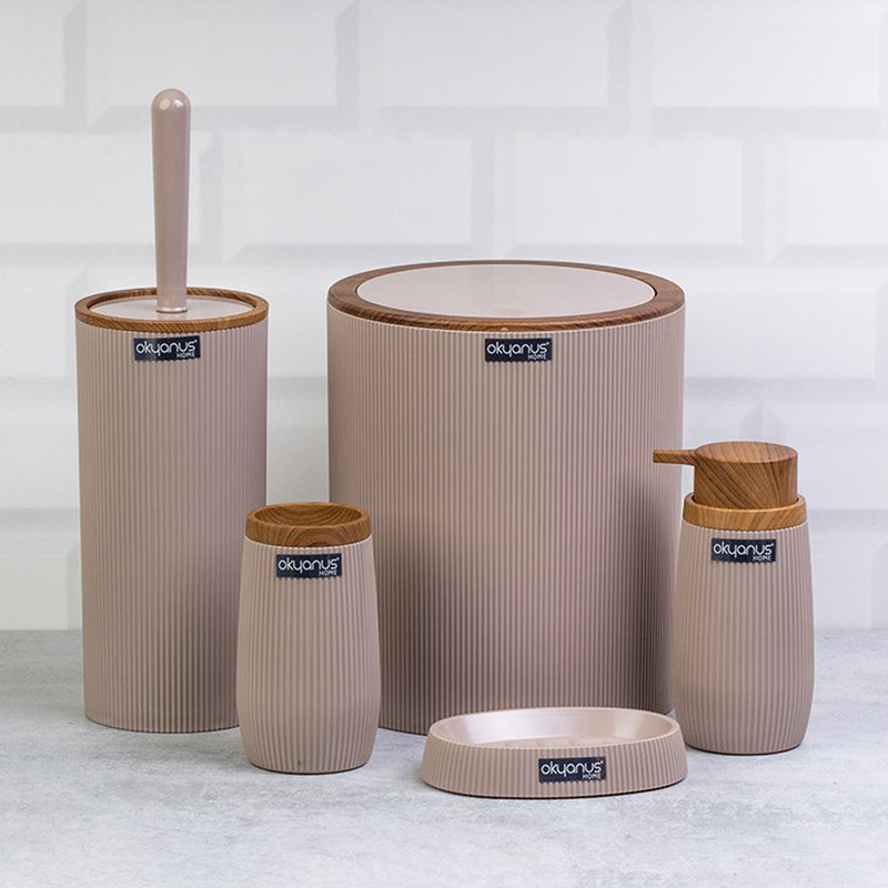 جدیدترین ست سرویس بهداشتی 5 پارچه ساخت فری هوم ترکیه پیشرو در صنعت بهداشت و لوازم خانگی، این ست 5 پارچه تمام نیازهای موجود در حمام و سرویس های بهداشتی را برطرف می نماید، محصولی بسیار کاربردی به همراه کیفیت و زیبایی. این مجموعه زیبا از آکریلیک تولید شده است که ماندگاری بسیار بالایی دارد. دارای استانداردهای ایمنی و سلامت بهداشت انسان از اروپا را دارد و محصولی صادراتی به اروپا می باشد. شامل سطل درب دار، فرچه و ظرف مخصوص آن، جا مسواکی، جامایع پمپی و جاصابونی می باشد.تمامی اقلام قابلیت شستوشو دارند و میتوانید با خیالی آسوده، آنها را بشویید. با این ست بهداشتی، زیبایی محیط و سرویس ها چندین برابر میشود.