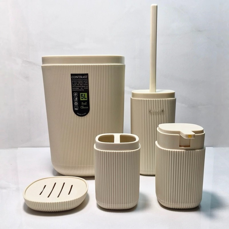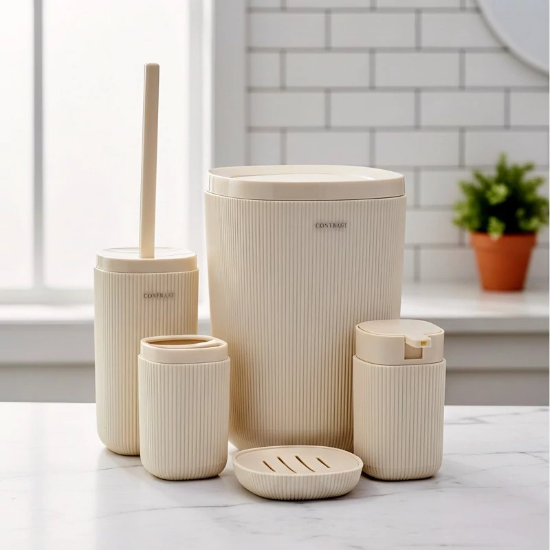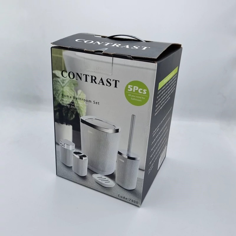 اگر به دنبال تغییر دکوراسیون سرویس بهداشتی خود با هزینهای معقول اما تأثیرگذار هستید، ست ۵ پارچه کنتراست (Contrast) مدل روما خطی انتخابی هوشمندانه است. این ست با طراحی مینیمال و بافت راهراه (خطی) خود، جلوهای مدرن و در عین حال گرم به فضای سرویس بهداشتی شما میبخشد.