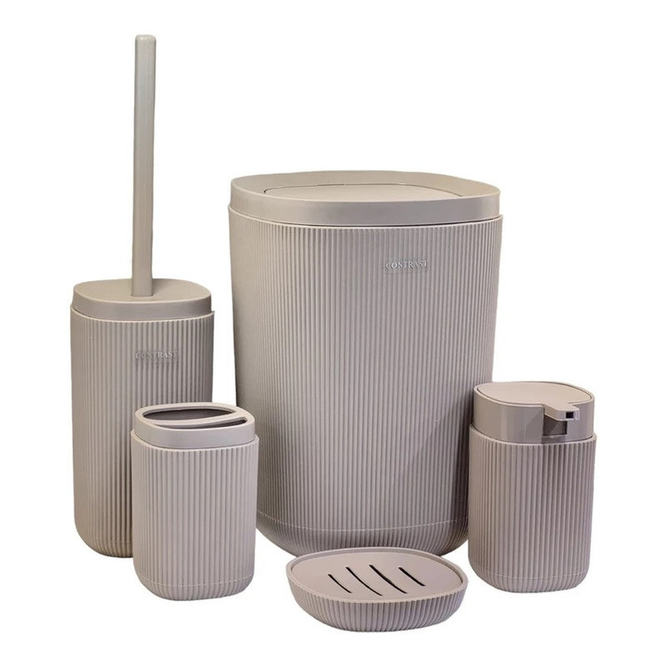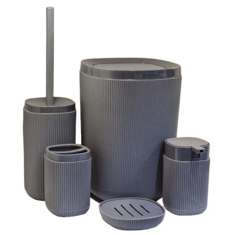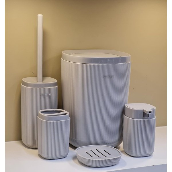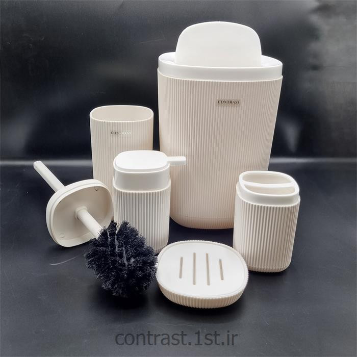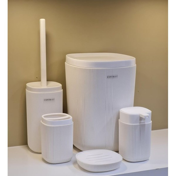 سایر توضیحات: جنس از پلاستیک مواد نو pp نشکن آنتی باکتریال پنج پارچه شامل: سطل با درب بادبزنی،فرچه،جا مایع،جامسواک،جا صابون جنس از پلاستیک مواد نو PP قابل شست و شو با هر نوع مواد رنگ ثابت و بسیار شیک