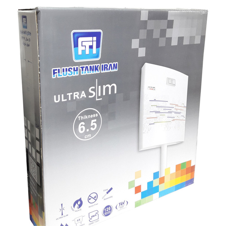 حجم تخلیه 3 و 6 لیتر -ضخامت 6/5 سانتیمتر -پمپ دو زمانه با قابلیت تنظیم میزان تخلیه ارتفاع استاندارد نصب 1200 از کف آبگیری از چهار جهت (دوطرف بغل و دو طرف کف) دارای نشان استاندارد ملی دارای پمپ و فلوتر یونیورسال و کاملا بیصدا