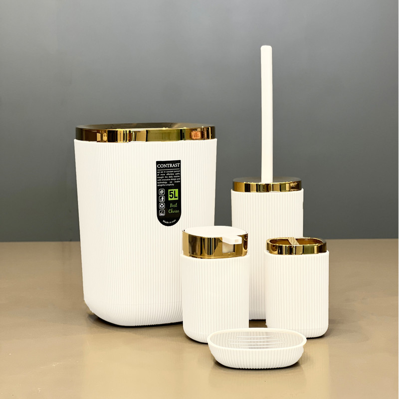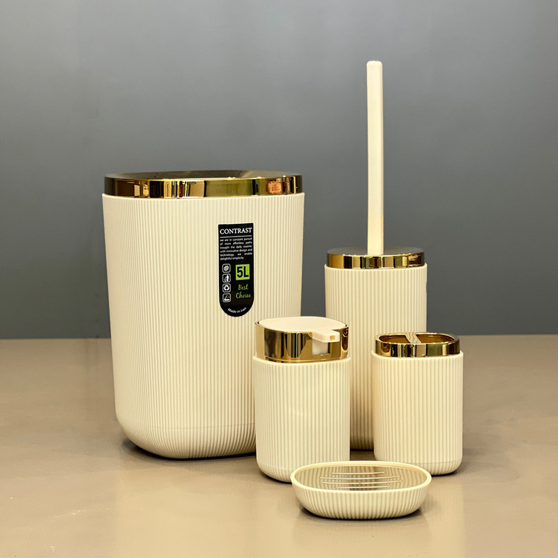 اگر به زیبایی و هماهنگی فضای حمام و سرویس بهداشتی خود اهمیت میدهید، ست سرویس بهداشتی 5 تکه طرح روما طلایی انتخابی شیک و چشمنواز برای شماست. این محصول پنج تکه دارد و از پلاستیک فشرده باکیفیت تولید شده است. ترکیب رنگ کرم و سفید همراه با جزئیات طلایی، جلوهای لوکس و گرم به محیط شما میبخشد. طراحی خاص و رنگهای خنثی این ست، آن را به گزینهای مناسب برای انواع دکوراسیون تبدیل کرده است. این محصول نهتنها برای مصرف روزمره، بلکه برای جهیزیه تازهعروسان نیز گزینهای ایدهآل محسوب میشود.