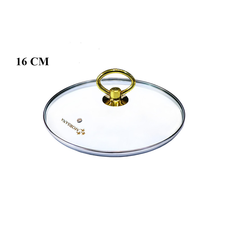 درب مُرسانا، در سایز 16 سانتیمتر از جنس پیرکس بوده بوده و دارای دستگیرهء فلزی به رنگ طلایی میباشد که برای انواع ماهیتابه، قابلمه، شیرجوش و ... در این سایز قابل استفاده میباشد.