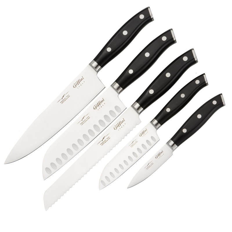 چاقو آشپزخانه جی فی نی کد 01، یک ست چاقوی عالی و کارآمد است که برای استفاده در آشپزخانههای حرفهای و علاقهمندان به پختوپز طراحیشده است. این ست شامل پنج چاقو با کاربردهای مختلف است که هرکدام از آنها بسیار تیز و باکیفیت عالی هستند. تیغه چاقوهای این ست از وانادیوم باکیفیت بالا تولید و با استفاده از تکنولوژی لیزر دقیق تیز شدهاند. این تیغهها بسیار تیز و دقیق هستند و با ضریب تیزی 14، بسیار سریع و دقیق برش میدهند. همچنین، این ست شامل چاقوی دمدستی، چاقوی گوشت، چاقوی سبزی، چاقوی سرآشپز و چاقوی برش نان و محصولات فریز شده، است، که هر یک از آنها برای کاربردهای خاصی طراحیشدهاند. دسته بسیار خوشدست و بدنه یکتکه این چاقوها، به کاربر امکان استفاده راحت و ثبات در گرفتن چاقو را میدهد. همچنین، دارای وزن مناسب و عالی برای کاربرانی است که به دنبال یک چاقوی عالی و بازدهی بالا هستند. چاقوی سرآشپز این ست، کارد بزرگی است که به کاربر امکان برش سریع و نچسبیدن آن را در موقع کار با مواد غذایی مانند گوجهفرنگی میدهد. ست چاقوی آشپزخانه جی فی نی کد 01، باکیفیت عالی، طراحی زیبا و بازدهی بالا، بهترین گزینه برای استفاده در آشپزخانه شما است. همچنین این ست چاقو با برند معتبر GIFFINI تولیدشده است که نشان از کیفیت بالای آن دارد.