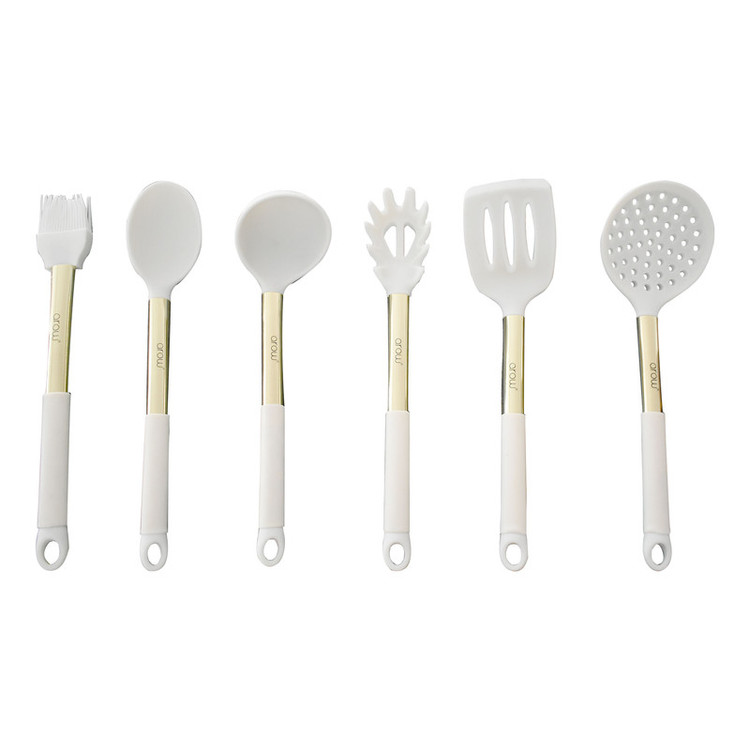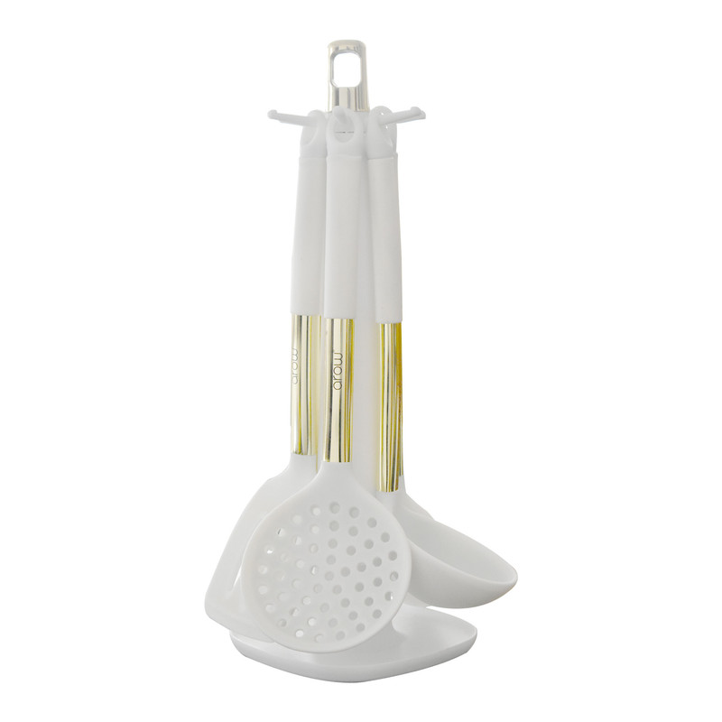 این محصول شامل : 1 عدد ملاقه(31 سانتی متر) - 1 عدد ملاقه پاستا(33 سانتی متر) - 1 عدد کفگیر آبکش(34 سانتی متر) - 1 عدد لیسک(30 سانتی متر) - 1 عدد کفگیر شیاردار(33 سانتی متر) - 1 عدد قاشق پخت و پز(35 سانتی متر)
