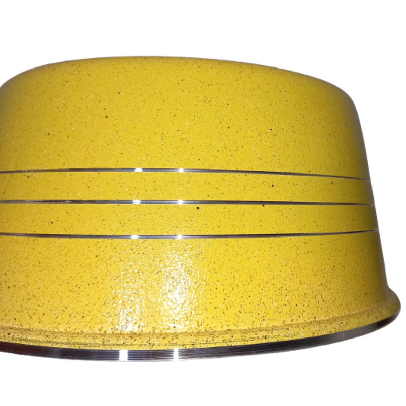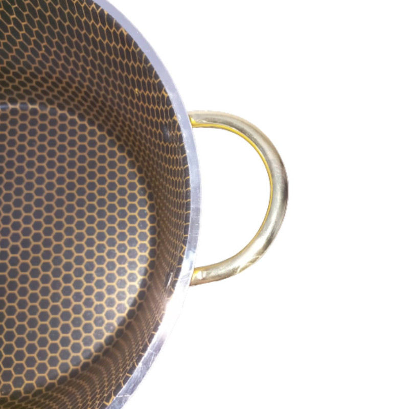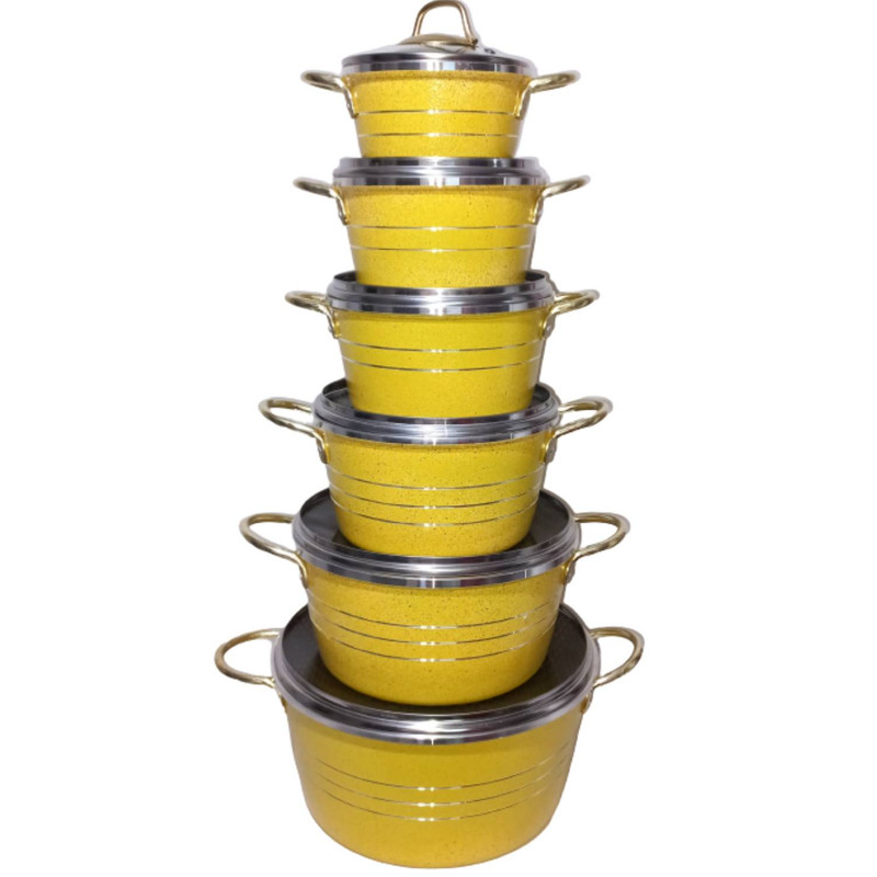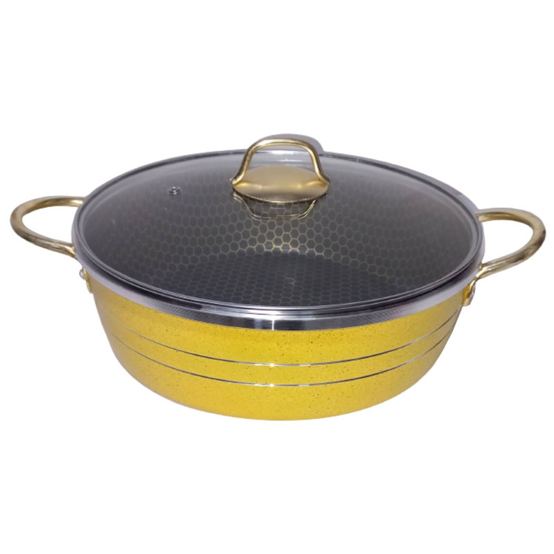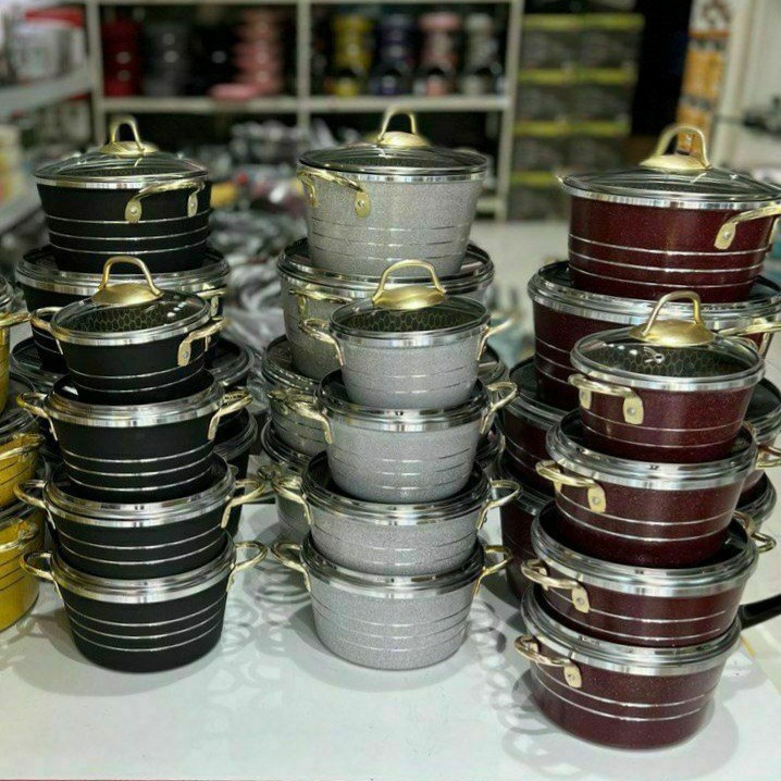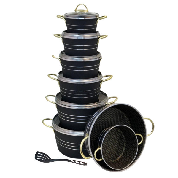 سرویس قابلمه 15 پارچه گلدانی مارک پرتوکالا با پوشش داخلی زنبوری دسته و سرپیچ طلایی این سرویس قابلمه به حالت گلدانی تولید شده به این صورت که قطر کف قابلمه نسبت به لبه اون باریکتر هستش سایز قابلمه ها: 14 16 18 20 24 28 سایز تابه ها: 18 28 بهمراه یک عدد کفگیر و شش درب پیرکس سوپاپ دار میباشد.