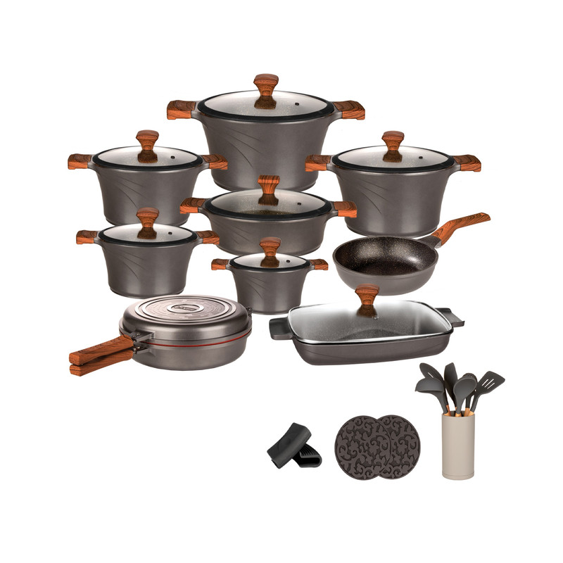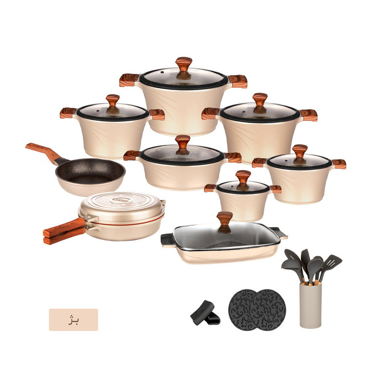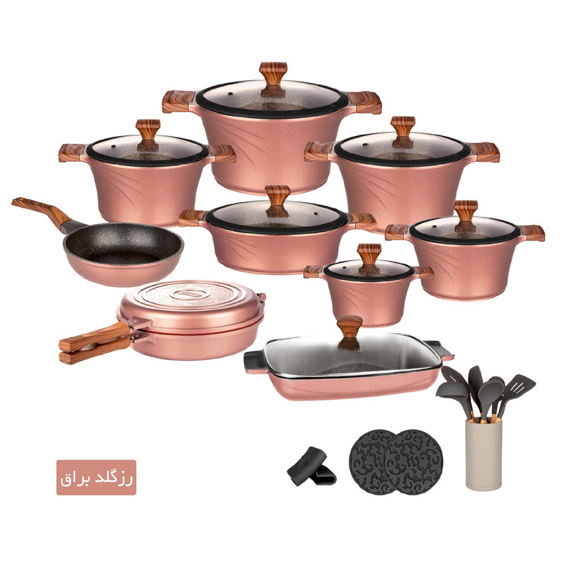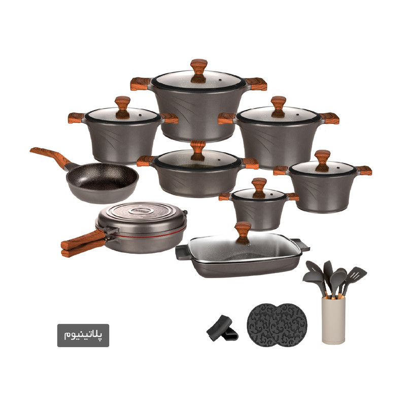 اقلام سرویس: قابلمه , تابه , دستگیره , زیرقابلمهای , سرویس کفگیر و ملاقه
