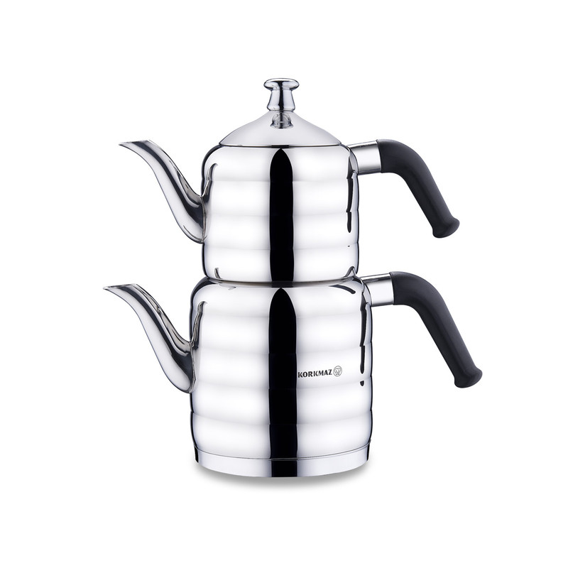 کتری قوری کرکماز A036 ترکیه یکی از بهترین مدل های کتری و قوری از این برند معتبر می باشد. همانطور که می دانیم چای محبوب ترین نوشیدنی در میان ایرانیان است و کمتر کسی را می توان یافت که به این نوشیدنی جذاب علاقه نداشته باشد. این مدل دارای یک قوری و کتری ست می باشد که با هم مورد استفاده قرار می گیرند. رنگ استیل و طرح زیبا و هماهنگ این ست جلوه ای منحصربفرد به آشپزخانه می بخشد. جنس کتری و قوری از استیل ضد زنگ با آبکاری کروم نیکل 18/10 می باشد که مقاوم ترین نوع استیل محسوب می شود. قوری و کتری استیل دارای ظرفیتی بسیار مناسب است. دستگیره ی درب قوری از جنس استیل است و طوری طراحی شده که حرارت بسیار ناچیزی را به خود جذب می کند تا در هنگام لمس، دستتان دچار سوختگی نشود. دستگیره ی روی قوری و کتری نیز از جنس استیل ضد زنگ هستند و همانند دستگیره ی درب انتقال حرارت بسیار ناچیزی دارند. بدنه ی کتری و قوری دو لایه است و گرما را به خوبی درون مخزن نگه می دارد تا مدت زمان زیادی آب داخل کتری گرم باقی بماند. از خرید این محصول اورجینال ساخت ترکیه یقینا رضایت کاملی خواهید داشت.