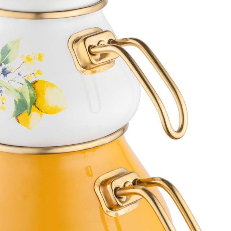 با این سرویس کتری و قوری، به زمان صرف چای خود جلوهای خاص ببخشید. این سرویس کتری و قوری با ظاهر و طراحی چشمنواز و براق خود، مهمانان شما را خوشحال خواهد کرد و دستههای ارگونومیک آن، استفاده راحت را تضمین میکند.