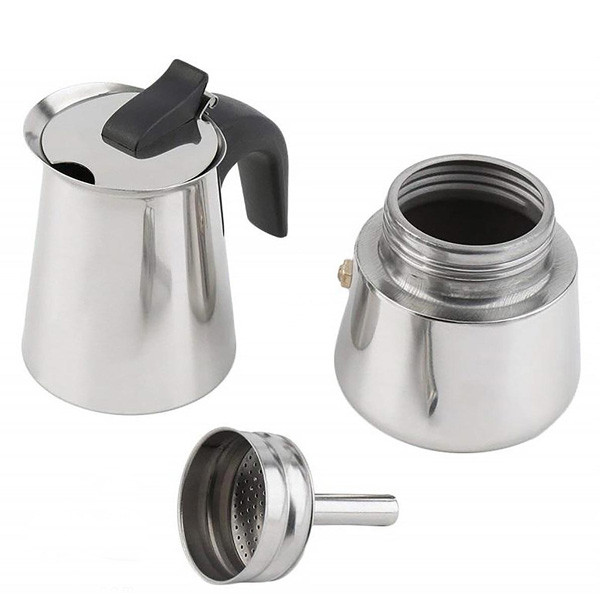 قهوه جوش espresso maker در مدل روگازی از جنس استیل درجه 1 ساخته شده و مناسب برای تهیه و دم کردن 2 فنجان قهوه اسپرسو طراحی شده است. آلیاژ مرغوب بدنه هر سه قسمت این اسپرسو ساز به هیچ عنوان روی طعم و مزه قهوه تاثیری ندارد و تنها با پر کردن آب تا زیر سوپاپ برنجی و قرار دادن صافی و ریختن قهوه آسیاب شده، به سرعت عصاره گیری را شروع میکند و در کوتاه ترین زمان ممکن اسپرسویی خوش طعم برای شما دم میکند.