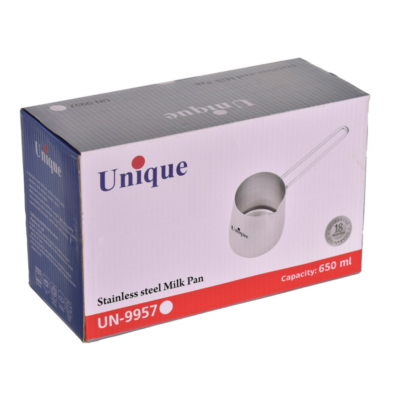 شیر جوش استیل یونیک کد9957 از جمله محصولات دسته شیر جوش می باشد که از جنس استیل ساخته شده است. شیر جوش ها عموما از جنس استیل، گرانیت و یا تفلون ساخته شده اند و بسته به جنس و سایز تولید شده قیمت های متفاوتی دارند. این شیر جوش برند یونیک با طراحی ساده و شیک دارای تک دسته نگهدارنده می باشد و گنجایش آن 650 میلی لیتر ( 0.65 لیتر ) می باشد .