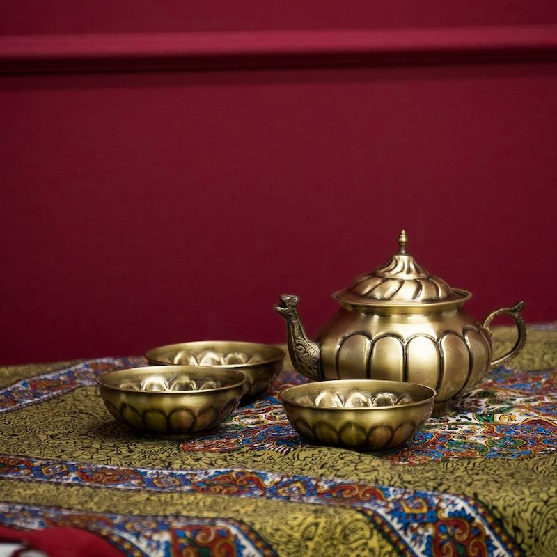 قوری برنجی، از اون ظرفهایه که وقتی نگاش میکنی، انگار صدای قلقل سماور و بوی هل و دارچین میاد. یه جور حس نوستالژی خالصه.