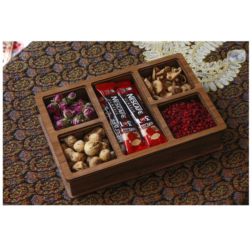 جعبه پذیرایی کد H212 ابزاری بسیار کاربردی برای پذیرایی از مهمان در منزل و محیط کار است که برای نگهداری انواع آجیل، دمنوشها و شکلات مورد استفاده قرار میگیرد. یکی از وسایل نفیسی که ظرافتهای آن هر بینندهای را به خود جذب میکند.