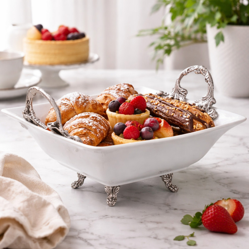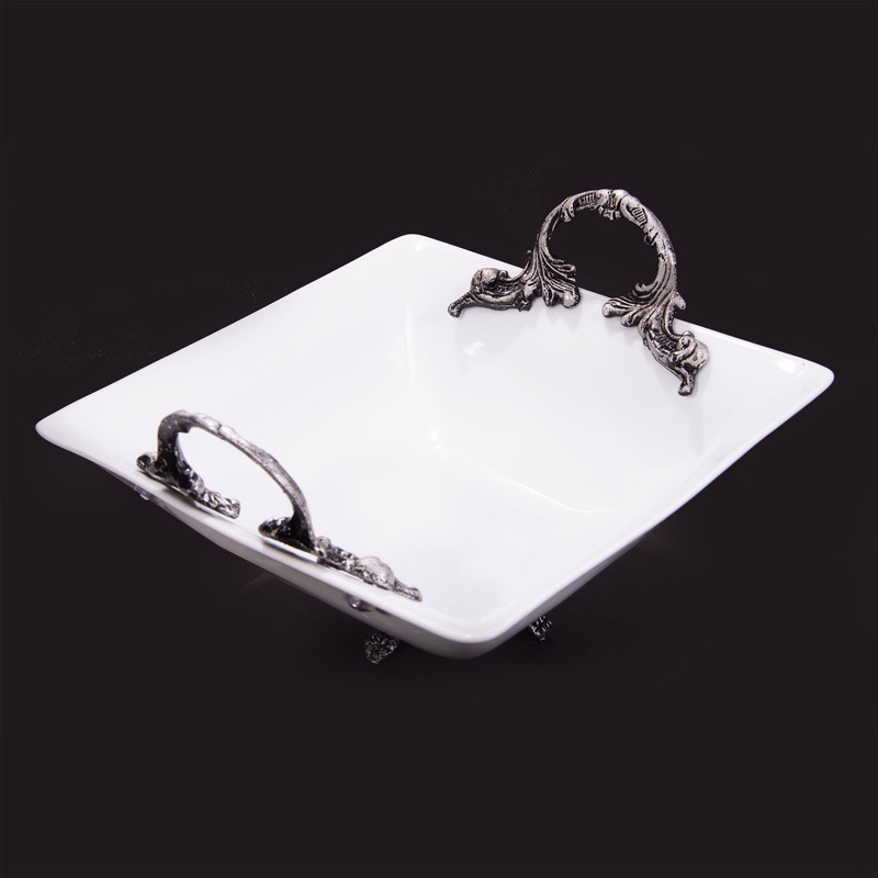 توضیحات ابعاد ظروف: ابعاد ظرف: 23.5x23.5x8.5 سانتیمتر - ارتفاع ظرف با پایه 11.5سانتیمتر - طول پایه 3 سانتیمتر