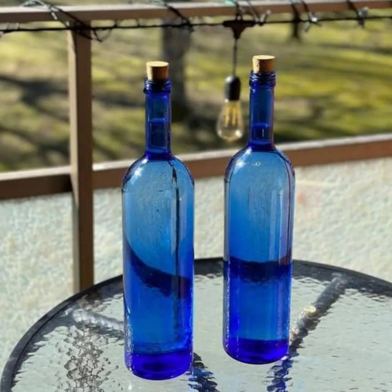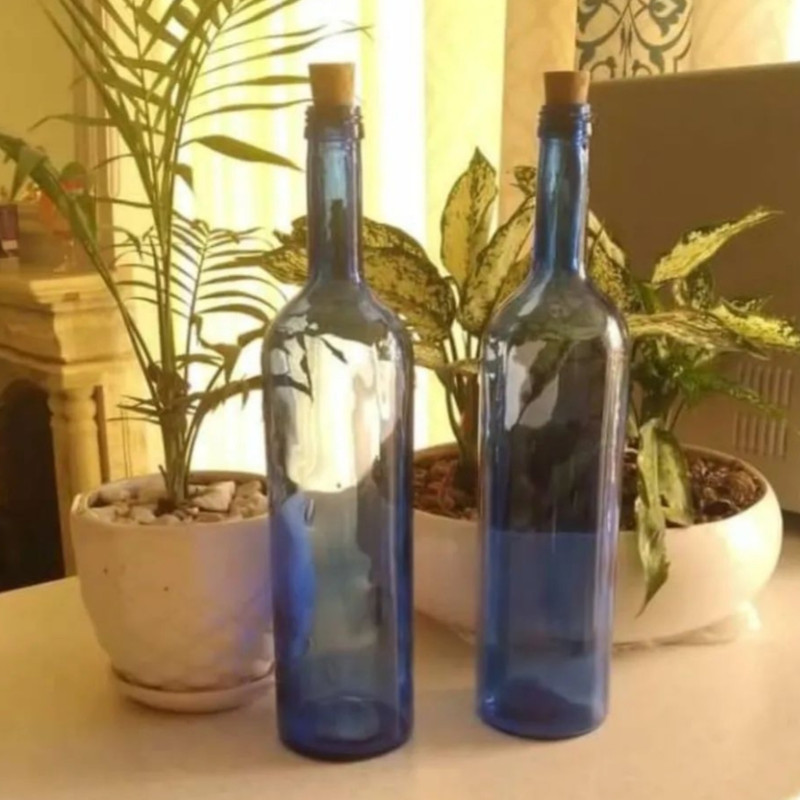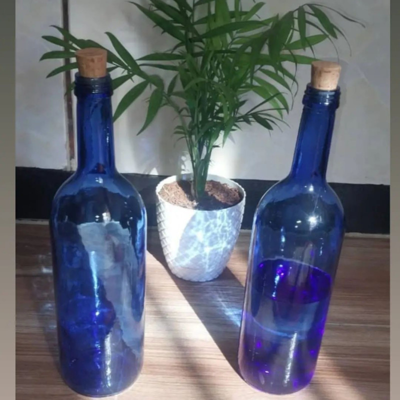 این شیشه با رنگ آبی کبالت پخته شده و رنگ ثابت است و کاملا قابل شست وشو و سال ها استفاده است. حجم آن 1.5 لیتر می باشد. درب چوب پنبه ای اصل وارداتی دارد. شیشه ی شفاف که به راحتی نور را عبور می دهد و آب را خورشیدی می کند.
