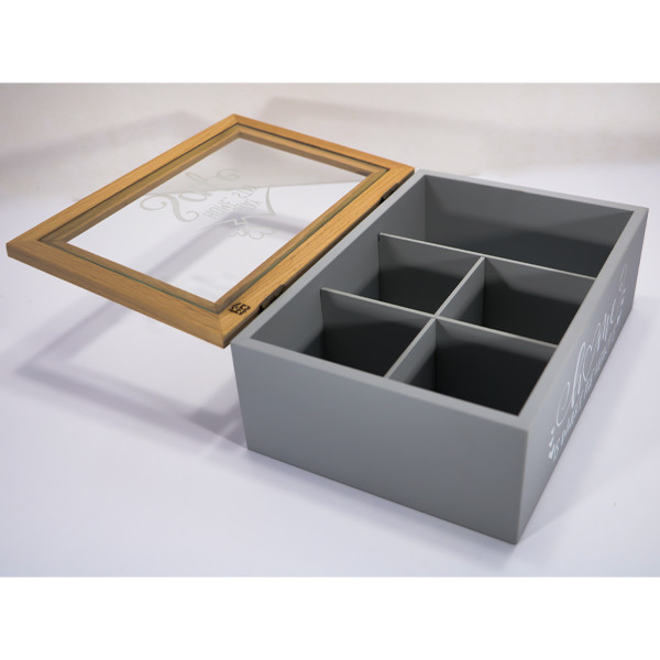 طراحی فوق العاده به روز ، جنس تماما چوبی و رنگ بندی جذاب ، ویژگی های جعبه پذیرایی هوم می باشد . مناسب جهت جای تی بگ یا نسکافه یا شکلات و تنقلات میباشد