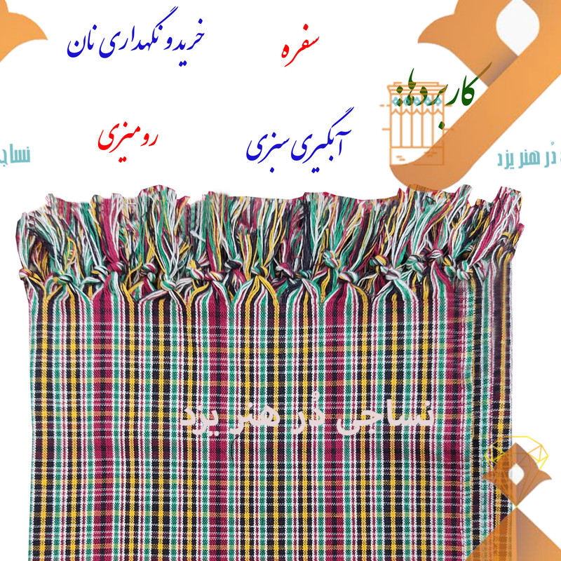 سفره 100 درصد نخی (اصطلاحا 100 درصد نخ پنبه) از برند نساجی دُر هنر یزد و با طرح فوق العاده جذاب zartoshti گره دار (ریشه دار) یکی از بهترین سفره هایی است که در بازار وجود دارد و برای کاربرد های مختلفی از جمله سفره، رومیزی، آبگیری سبزی و میوه و خرید نان می توان استفاده کرد. سایز این سفره یک در یک متر است که ممکن چند سانت تلرانس تولید داشته باشد.