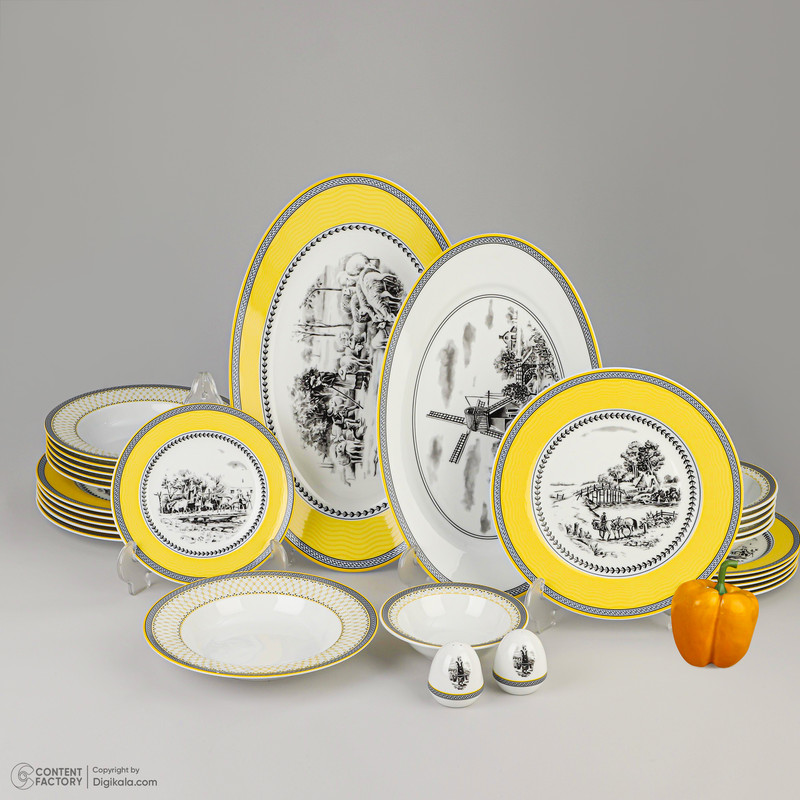 سرویس غذاخوری 28 پارچه 6 نفر چینی زرین ایران مدل ایتالیا اف Village 2 درجه یک