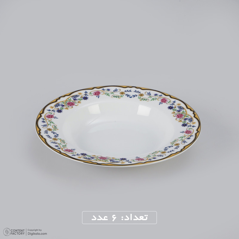 اقلام سرویس: دیس , بشقاب غذاخوری , بشقاب خورشخوری , پیشدستی , نمکپاش و فلفلپاش , پیاله