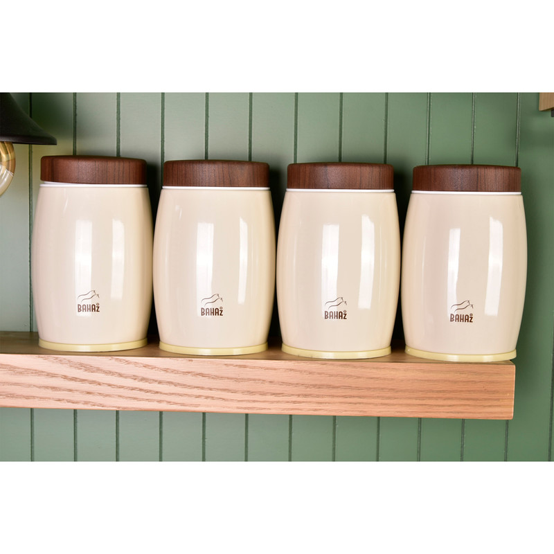 این ست شامل : 1 عدد سطل زباله ، 1 عدد سطل برنج ، 1 عدد سطل قند ، 1 عدد سطل شکر، 4 عدد جا حبوبات