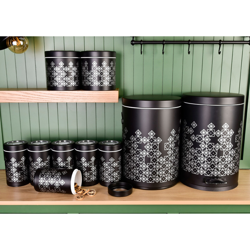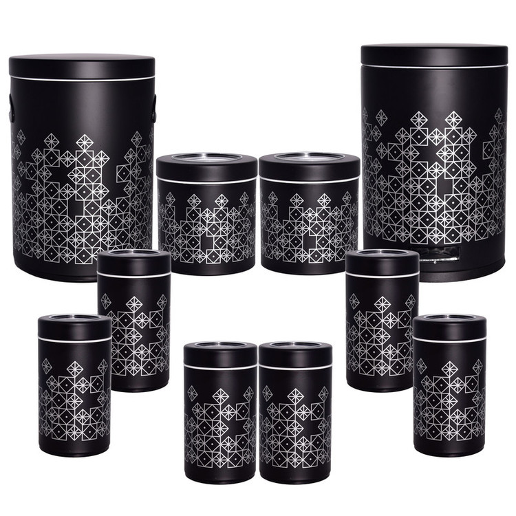 این ست شامل : 1 عدد سطل زباله ، 1 عدد سطل برنج ، 1 عدد سطل قند ، 1 عدد سطل شکر، 6 عدد جا حبوبات