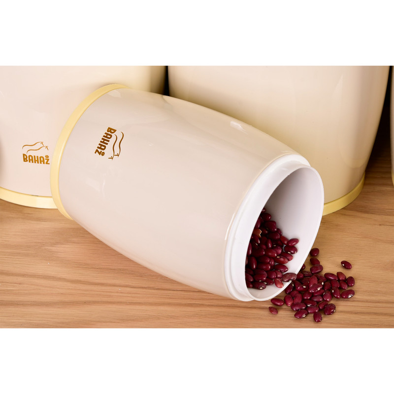 این ست شامل : 1 عدد سطل زباله ، 1 عدد سطل برنج ، 1 عدد سطل قند ، 1 عدد سطل شکر، 4 عدد جا حبوبات