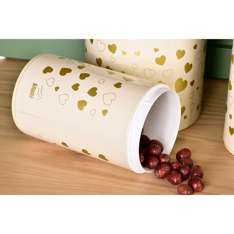 این ست شامل : 1 عدد سطل زباله ، 1 عدد سطل برنج ، 1 عدد سطل قند ، 1 عدد سطل شکر، 6 عدد جا حبوبات