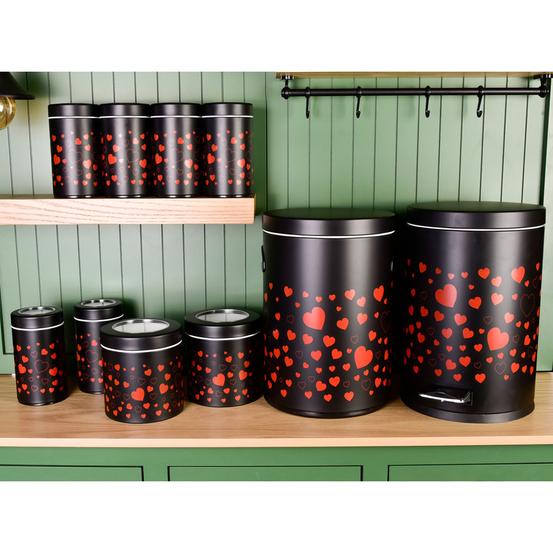 این ست شامل : 1 عدد سطل زباله ، 1 عدد سطل برنج ، 1 عدد سطل قند ، 1 عدد سطل شکر، 6 عدد جا حبوبات