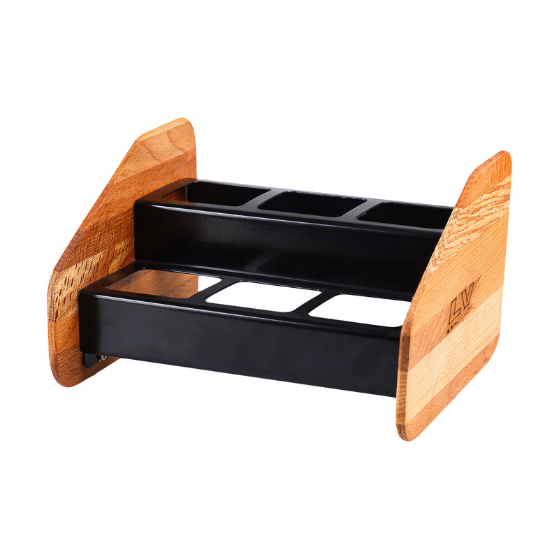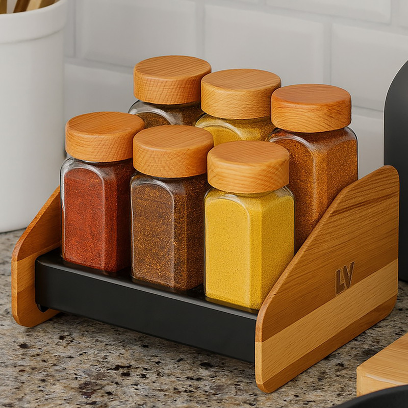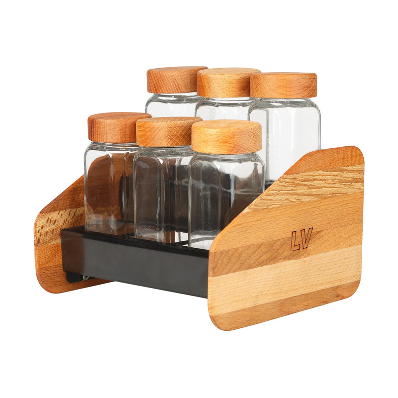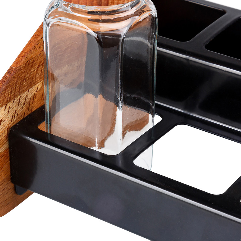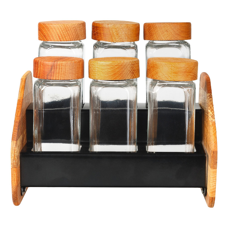 این کالا به همراه شش عدد ادویه پاش شیشه ای به ارتفاع 12 سانت و استند چوبی/فلزی ارائه می شود.