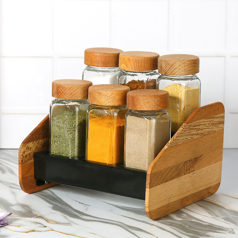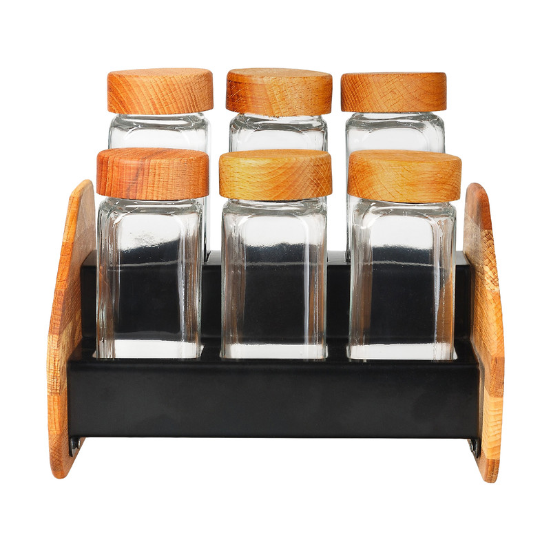 این کالا به همراه شش عدد ادویه پاش شیشه ای به ارتفاع 12 سانت و استند چوبی/فلزی ارائه می شود.