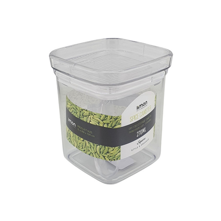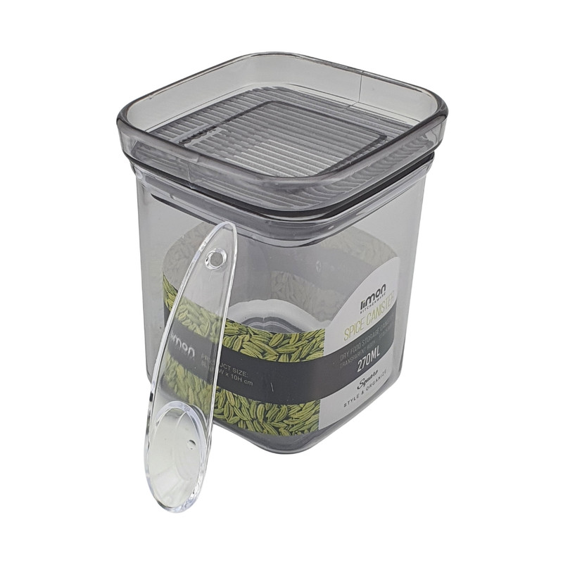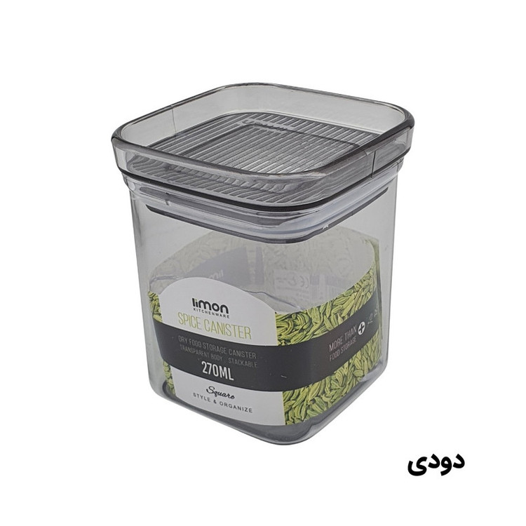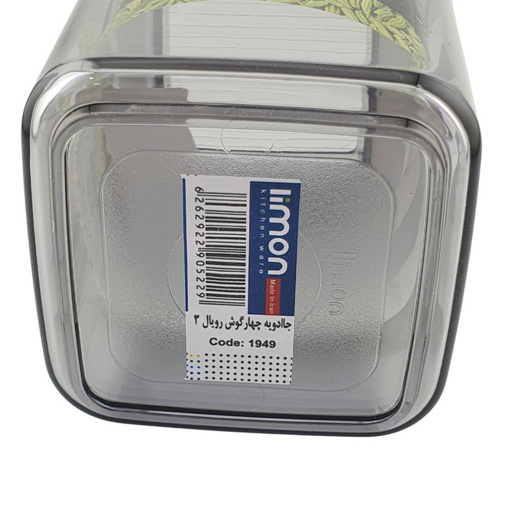 گنجایش: 270 میلی لیتر . در و بدنه جای ادویه رویال ۳ کد 1949 شفاف است و در دو تنوع رنگی دودی و بی رنگ تولید میشود. قابلیت روی هم چیده شدن بانکه ها، بدلیل طراحی خاص درب آنها وجود دارد و باعث نظم بیشتر کابینت میشود.