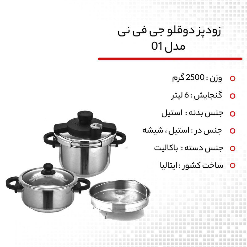 زودپز دوقلو جی فی نی مدل 01 گنجایش 6 و 4 لیتر