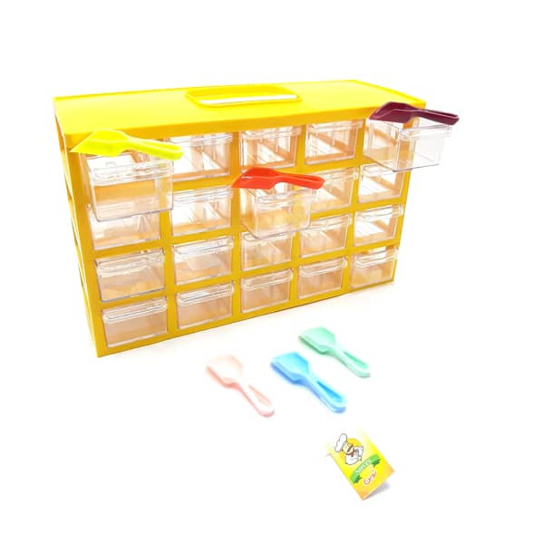 ابعاد32x11x15 سانتیمتروزن500 گرمسایر توضیحاتجا ادویه کریستالی به همراه 6 عدد قاشق پیمانه نوین برای پیمانه گیری ادویه جات مورد استفاده قرار می گیردرنگسفید
