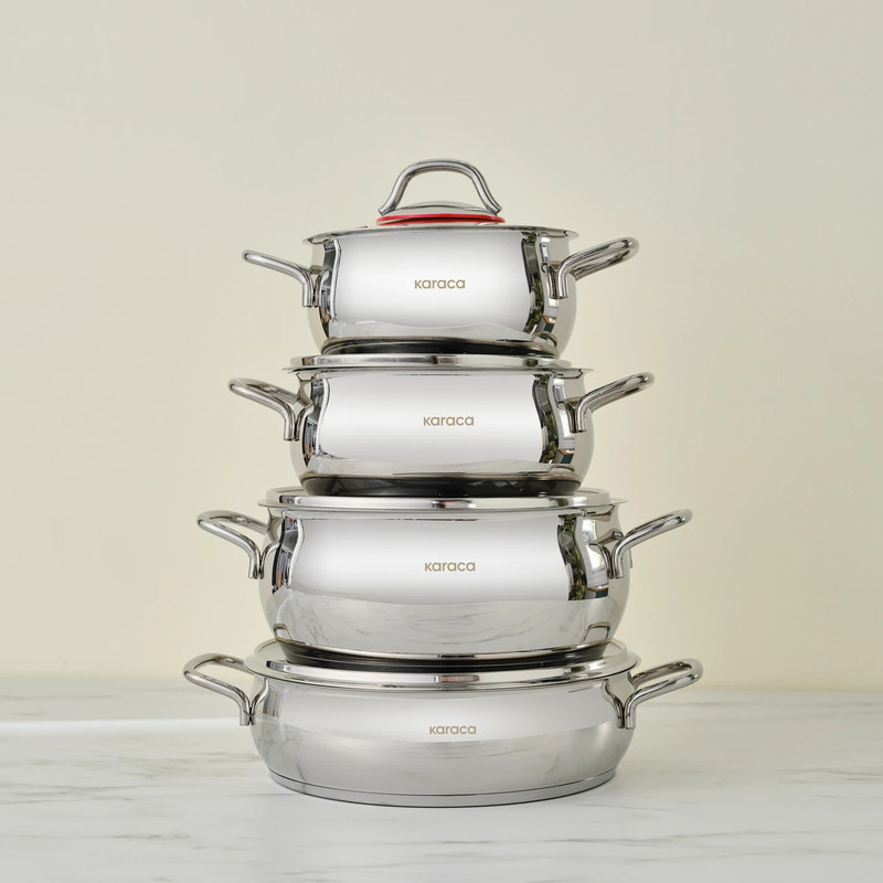 سرویس قابلمه ۸ پارچه کاراجا مدل Emirgan، تجربهای لذتبخش از آشپزی را برای شما به ارمغان میآورد. این مجموعه استثنایی، محصول کشور ترکیه و ساخته شده از مرغوبترین استیل ضد زنگ 18/10 است که علاوه بر دوام و درخشندگی فوقالعاده، دارای خاصیت آنتیباکتریال میباشد. این سرویس کامل شامل چهار قابلمه در سایزهای کاربردی ۱۶ سانتیمتر (۱.۶ لیتری)، ۱۸ سانتیمتر (۲.۲ لیتری)، ۲۲ سانتیمتر (۳.۶ لیتری) و یک نیمقابلمه ۲۴ سانتیمتر (۳ لیتری) به همراه دربهای شیشهای بسیار مقاوم و ویژه است که به گونهای طراحی شدهاند تا در برابر حرارت بالا کاملاً مقاوم باشند. طراحی هوشمندانه کف این قابلمهها باعث پخش یکنواخت و همگن گرما در تمام سطح شده، در نتیجه علاوه بر پخت عالی، در مصرف انرژی نیز صرفهجویی میشود. این محصول که به کشورهای بزرگ اروپا نیز صادر میشود، بر روی تمامی انواع اجاق گاز از جمله اجاقهای القایی کاملاً قابل استفاده است و به راحتی در ماشین ظرفشویی قابل شستشو میباشد. با طراحی زیبا و کیفیت ساخت بینظیر ، سرویس قابلمه کاراجا Emirgan سرمایهای ماندگار برای آشپزخانه شماست.