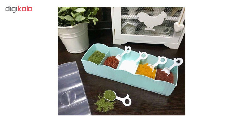 --دارای پیمانه اندازه گیری به تعداد 5 عدد --جنس بسیار خوب آن و تهیه از مواد اولیه دست اول --دارای 5 خانه برای قرار دادن ادویه جات مختلف --دارای در