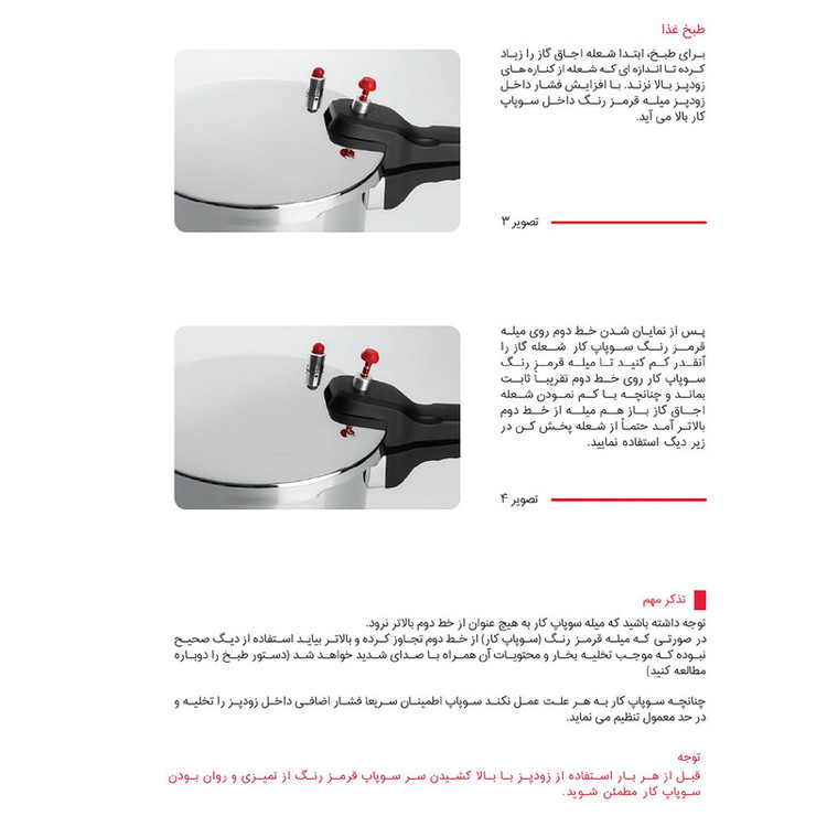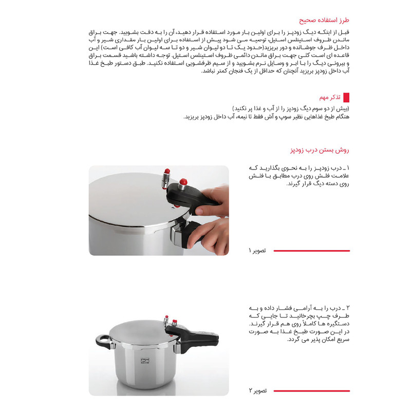 - استیل ضد خط و خش - کف سه لایه جهت جلوگیری از چسبندگی و سوختن غذا - سه سیستم تخلیه فشار جهت تامین حداکثر ایمنی - دارای نشان روی درب بمنظور آسان باز و بسته نمودن درب - قابل شستشو در ماشین ظرفشویی