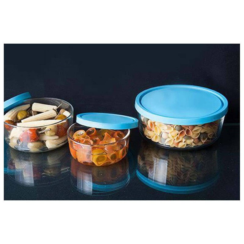 شامل سه ظرف در سه اندازه متفاوت به همراه درپوش